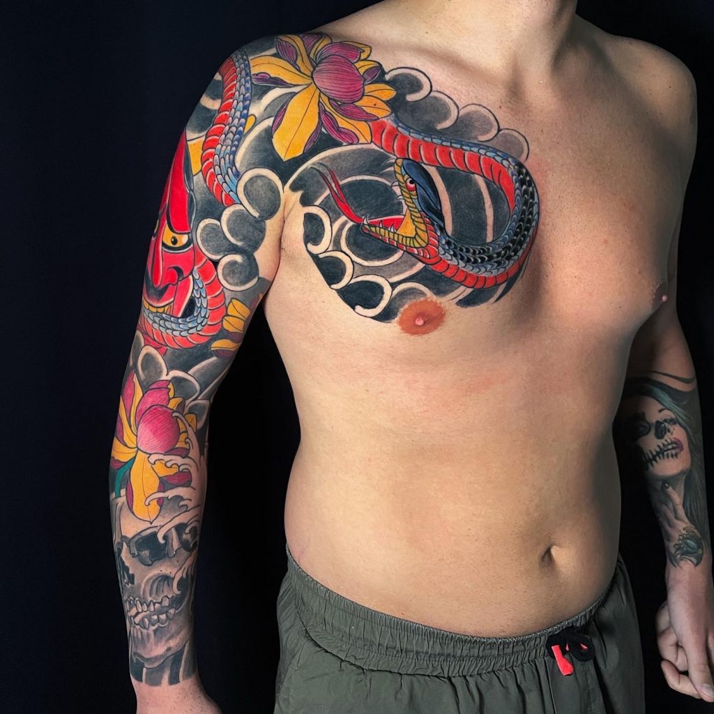 No Fear Tattoo Shop è un luogo in cui va scena l’arte, grazie alla filosofia scelta dal suo fondatore, Rosario Ferraro, che realizza japanese style tattoo a Pozzuoli. Il tattoo shop della provincia di Napoli lascia spazio a vari stili di tatuaggio, dal momento che apre le sue porte, a turno, ad artisti provenienti da tutte le parti di Italia. Nel No Fear Tattoo shop rispettiamo ogni forma d’arte e rifiutiamo di tatuare soggetti che non rappresentino nulla, che non seguano una logica, ma offendano quella che riteniamo un’arte tramandata da secoli.